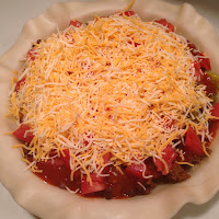 I have an affection for pot pies. Anything baked in a pie crust is appetizing to me. The other day, walking through the grocery store, I was trying to think of something different that I could make - besides the regular meat pies. I came up with the idea to make a taco pot pie. It is really quite delicious. Be creative and add other things that you would use in a taco. Here is the basic recipe.